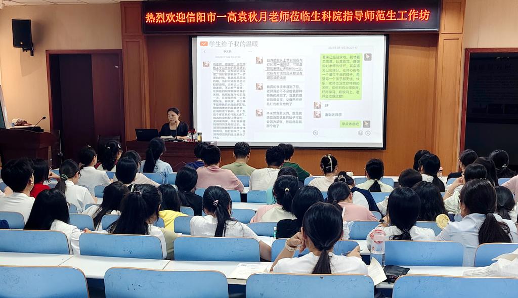 6月10日,信阳市第一高级中学资深班主任袁秋月教师应公司河南省生物科学专业师范生联合培养与实践工作坊的邀请,在生物楼414报告厅举办了一场题为《用心育人——我的班主任成长之路与教育心得》的专题讲座。工作坊教师赵昕梅、教学秘书靳建锋及百余名师范生参加了本次讲座。讲座由副经理彭波主持。