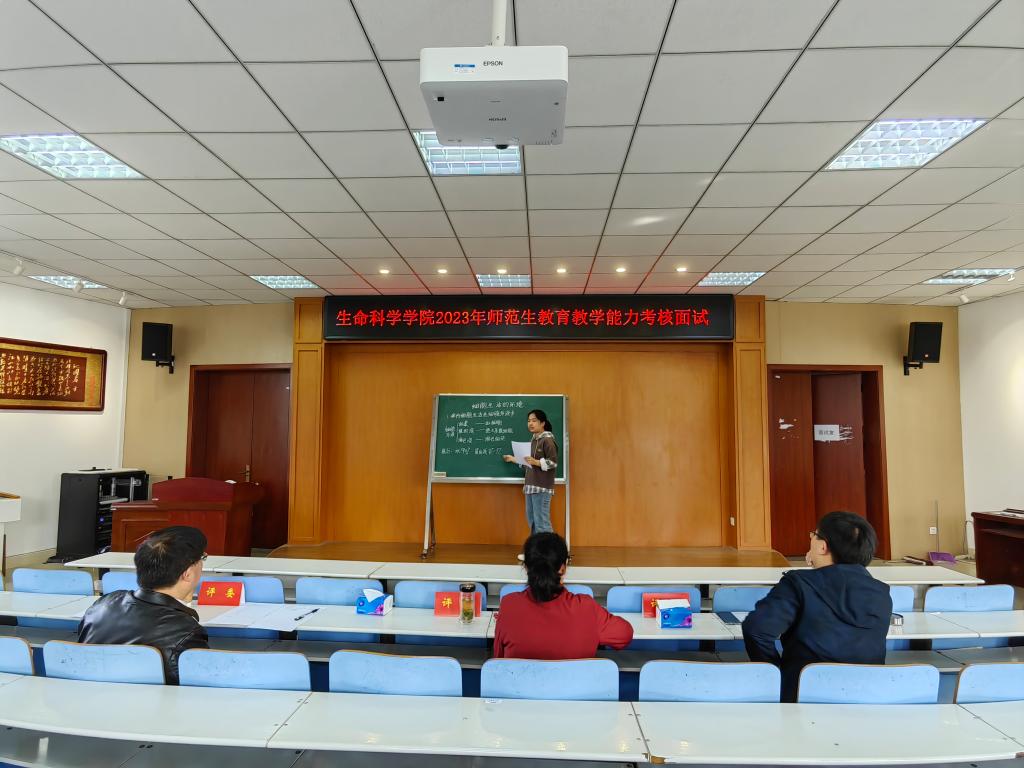 2019级生物科学专业共75名员工通过了前期公司教务处组织的师范生教师教师教育能力过程性考核和教师教学能力笔试考核,进入到面试考核环节。本次考核共分3组进行,每个面试室由3名考官组成。每名考生抵达考场后,先前往候场室签到,然后前往备课室抽题,随后进行限时20分钟的备课和撰写教案,最后进入面试环节。面试环节由10分钟的试讲、5分钟的答辩组成。每组考官根据教学设计、教学内容、教学组织、语言教态等指标给考生进行测评打分。