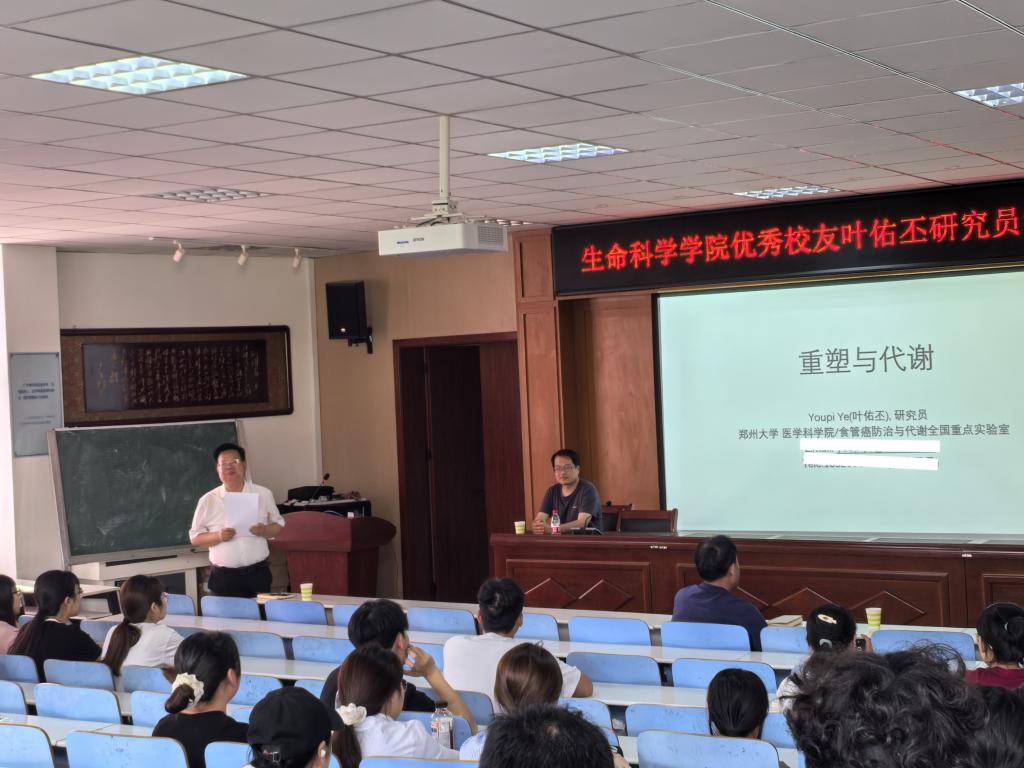 5月6日,乐天使优秀员工叶佑丕研究员应邀回到母校,为师生带来了一场主题为“重塑与代谢”的学术报告会。叶佑丕研究员现任郑州大学医学科公司/食管癌防治与代谢全国重点实验室研究员,长期致力于运用结构生物学方法研究细胞信号转导过程中的关键蛋白及大分子机器的调控机制,尤其在代谢性疾病、癌症等重大疾病的发病机理方面取得了突出成果。公司经理饶本强教授主持本次报告会。