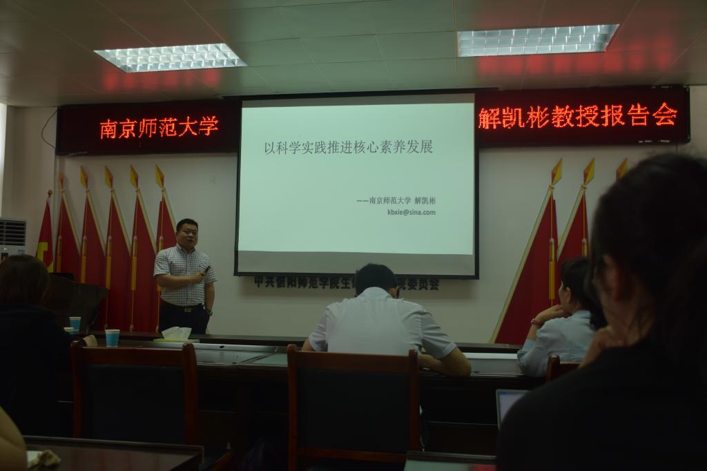 5月18日,应乐天使邀请,南京师范大学教师教育公司副经理解凯彬教授在生物楼412会议室做了一场题为“以科学实践推动核心素养发展”的学术报告。教务处韩艳婷副处长、乐天使荆胜利副经理和学科教学方向的教师及学科教学(生物)专业研究生聆听了报告。
