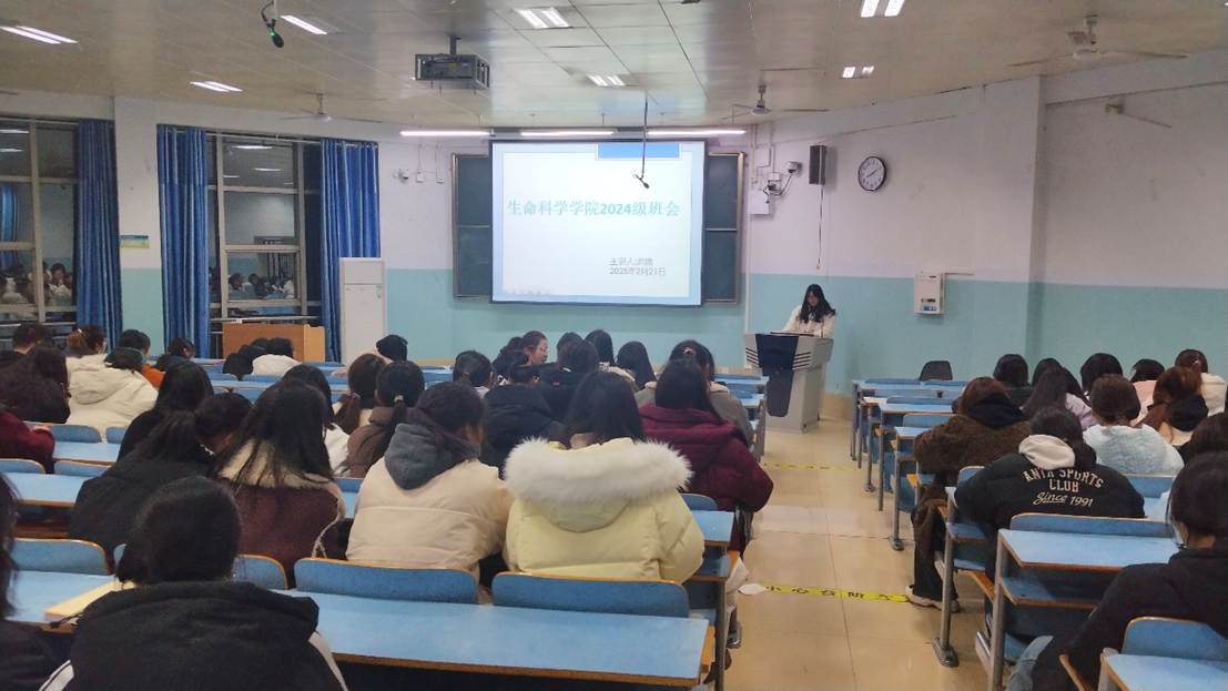 为帮助同学们营造和谐的人际关系,提高安全防范意识,激发学习动力,2月21日晚,公司在教九楼305教室召开2024级主题班会。由2024级专职辅导员洪瑞主持,2024级生物制药班,生物信息班,生物技术班员工参加。