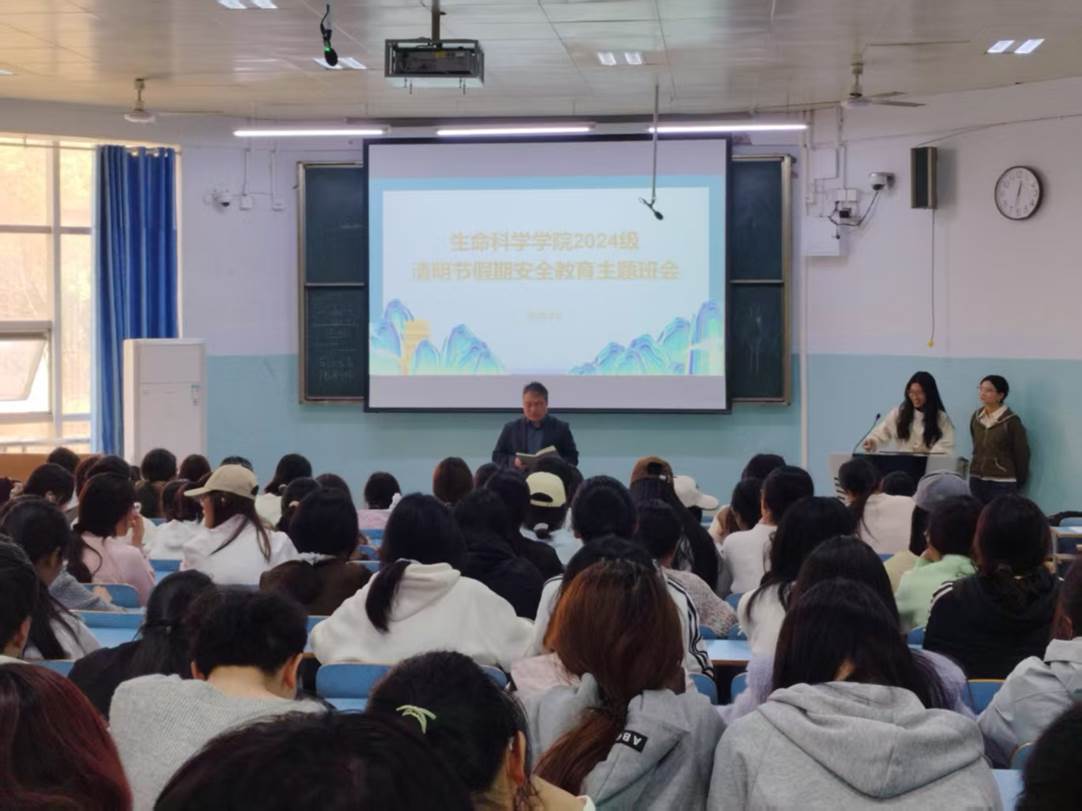 荣宪举首先向同学们介绍了清明节的由来和传统习俗,强调了清明节不仅是缅怀先人的重要节日,也是踏青出游的好时机,但同时也不能忽视假期中的安全问题。随后围绕交通安全、消防安全、食品安全、防溺水安全以及防诈骗安全等多个方面,进行了详细的讲解和提醒。针对清明节期间祭祀用火增多的情况,荣书记着重强调了消防安全,倡导文明祭祀,提醒同学们不要在林区、墓地等易燃区域焚烧纸钱、燃放鞭炮,如需祭祀,应选择指定的安全区域,并在祭祀结束后确保火源完全熄灭。