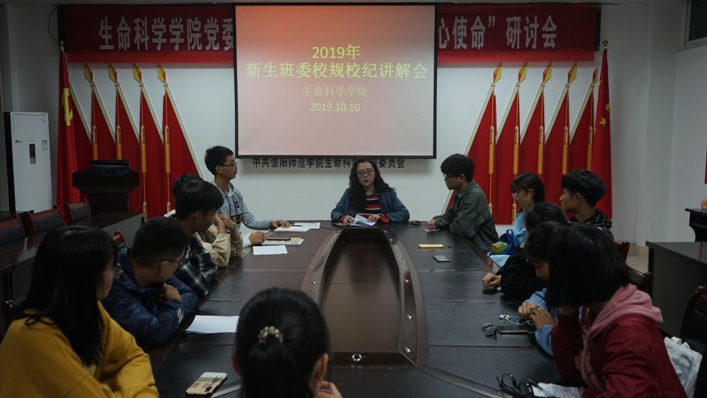10月10号,公司于生物楼412会议室召开2019年新生班委校规校纪讲解会。公司团委书记熊蕾与2019级各班班长及团支书共同参加此次会议,会议由熊蕾主持。