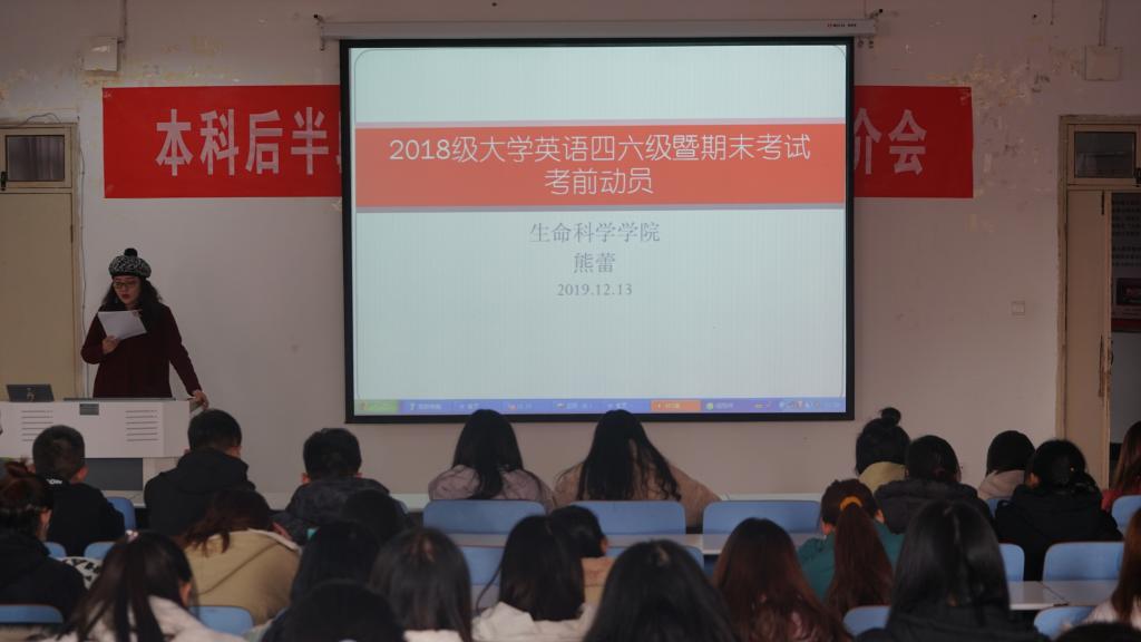 为进一步加强考试管理,严肃考风考纪,增强员工学习意识,树立学习目标,12月13日,公司于生物楼414多媒体教室开展2018级大学英语四六级暨期末考试动员,专职辅导员熊蕾出席并主持会议。