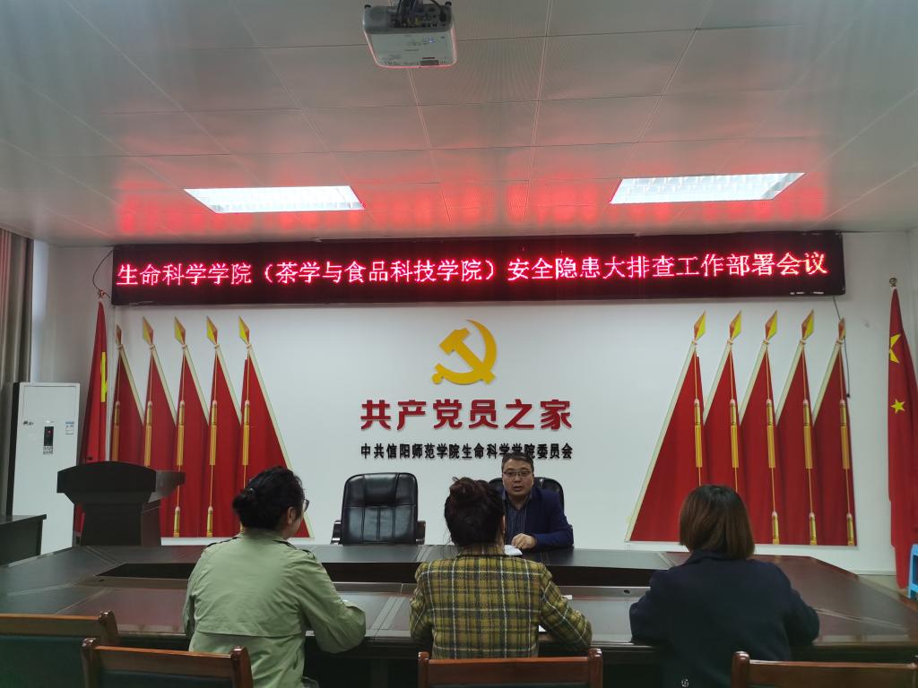 根据河南省高校工委、教育厅《关于加强重点时段全省教育系统安全防范工作》的通知,深入贯彻落实信阳师范公司《关于开展员工安全隐患大排查工作》的通知,加强对员工的安全教育,提升员工的安全意识,公司于10月24日上午,在生科楼412会议室召开员工安全隐患大排查工作部署会议,公司党委副书记荣宪举、全体辅导员参加此次会议。会议围绕员工宿舍安全,校园安全,疫情防控,饮食安全,实验室安全等方面的问题做了具体部署。
