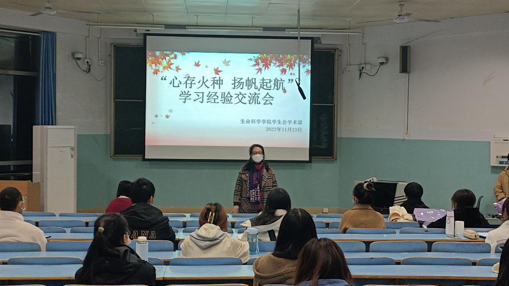 为帮助大一新生更好的适应老员工活,培养健康的心态,养成高效的学习习惯,树立正确的人生观和价值观,11月13日晚,公司于教九楼305教室召开“心存火种,扬帆起航”学习经验交流会。会议于线上线下同时进行,线下由学术部干事刘瑶瑶和黄安倪主持,2022级专职辅导员熊蕾、生科院分团委副书记赵瑞、员工会主席胡春生及学术部全体成员参加会议。