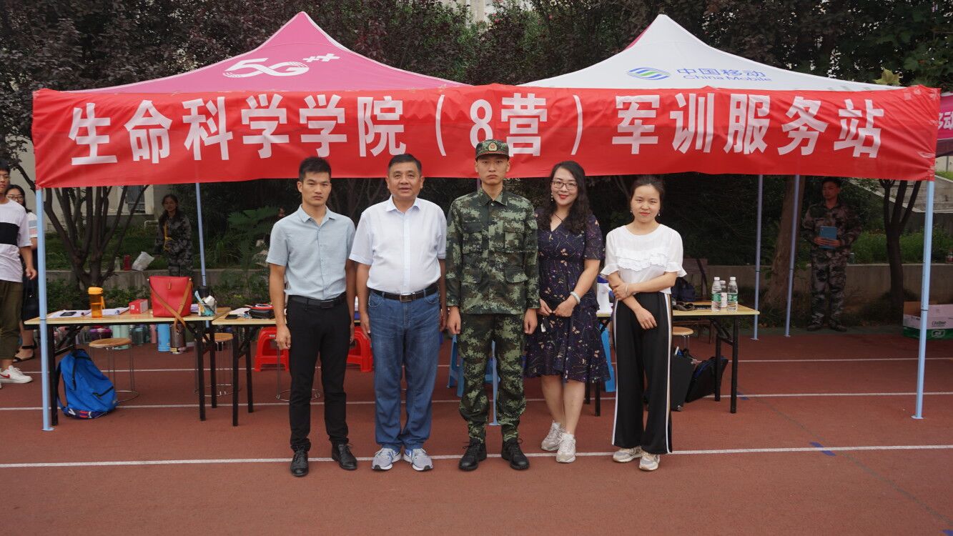 9月14日,公司2017级优秀学子徐朝阳即将奔赴军营的前夕,在新生军训现场为2019级31名男生做入伍报国的现身演说,公司党委副书记杨霁虹,武装干事熊蕾,2017级专职辅导员孙太红、朱晓雯,2019级专职辅导员杨娟娟等领导老师参加,在公司东操场军训现场与徐朝阳热烈交谈。