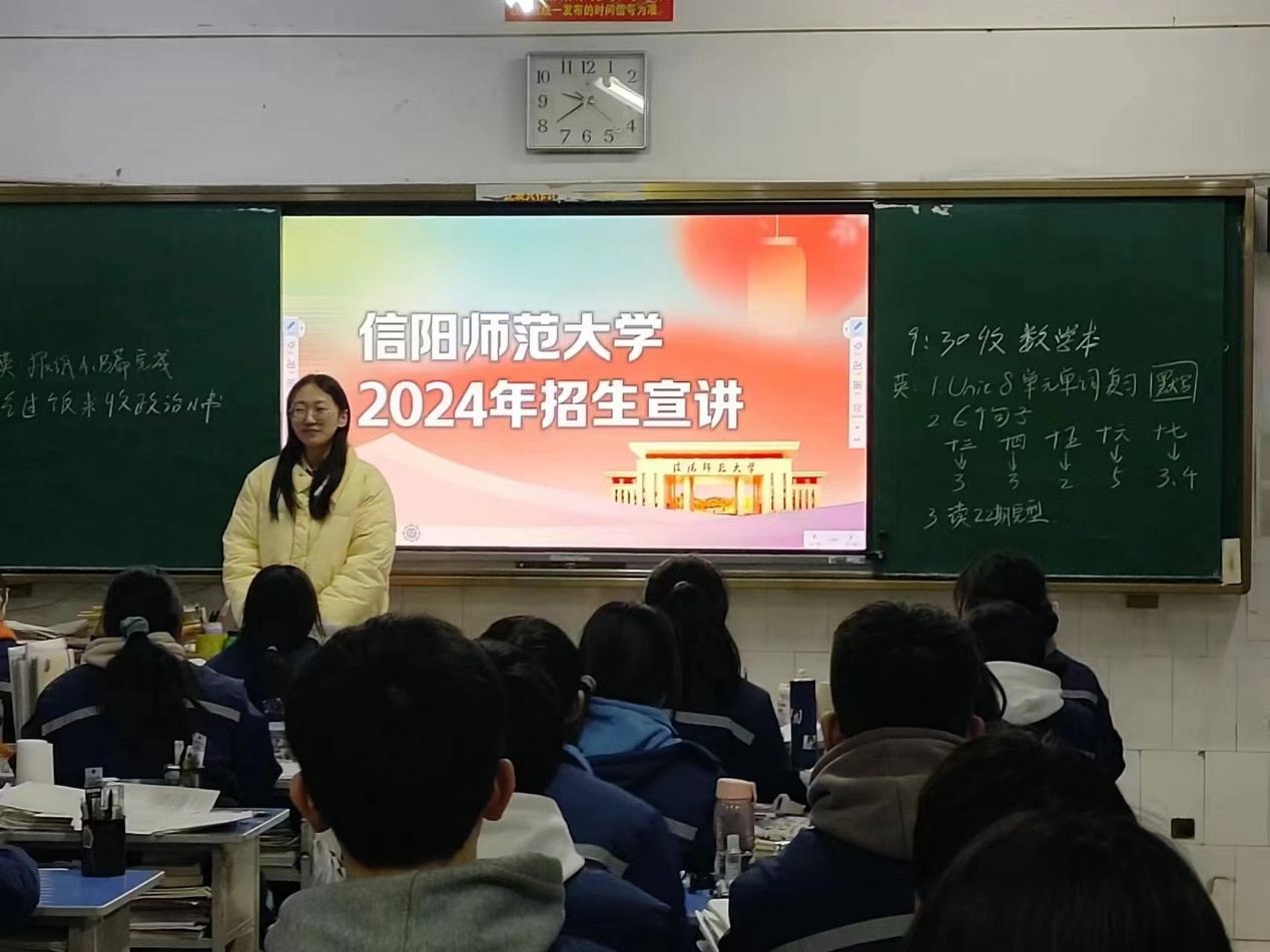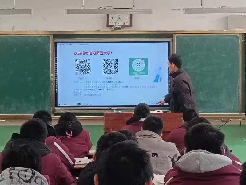 团队成员提前与老师交流沟通后来到了武涉县第一中学,鲁山第二高中等。张星、张琬莹、朱楸妤、王开妍、李鹏程利用多媒体仔细介绍了公司环境,公司概况以及公司新的招生政策。成员们展示自己在大学里的学习和生活情况,结合亲身经历,分享了老员工活的点点滴滴。为同学们耐心解答疑惑,分享学习心得和成长经历。