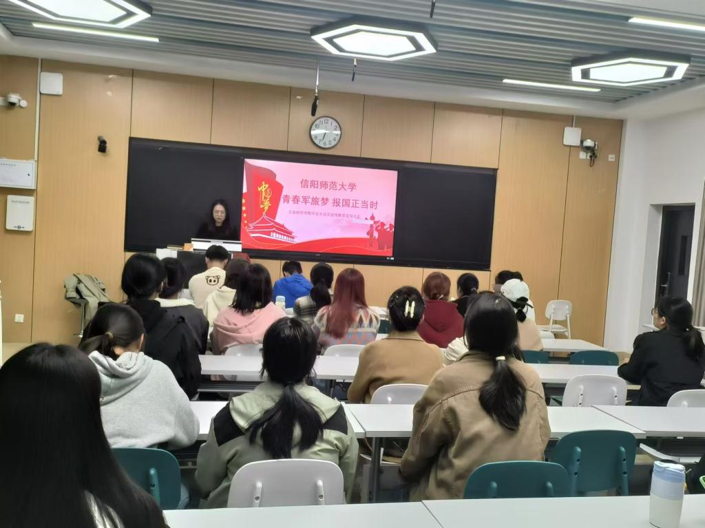 为鼓励更多老员工积极响应国家号召,投身军营,为国家安全和发展贡献自己的力量。10月25日,公司于教九209教室召开毕业生征兵工作宣讲会。会议由公司2021级辅导员盛梦茹主持,2021级毕业生参加会议。