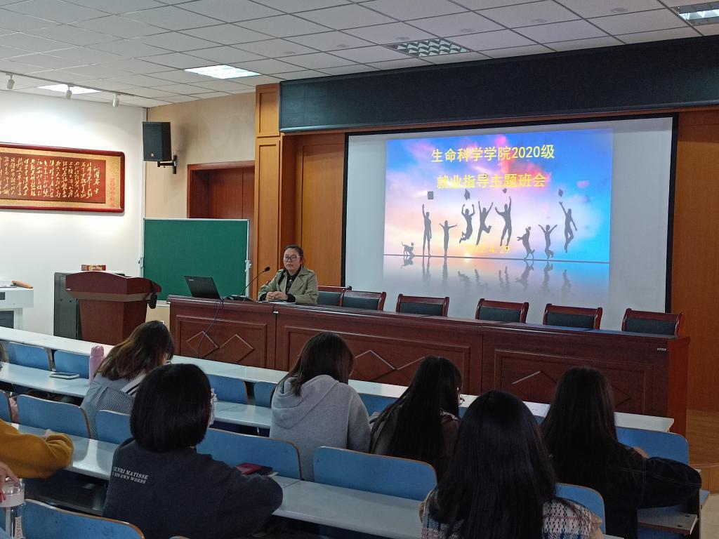 为了让公司员工更好的制定今后人生的目标,规划人生道路,树立就业信心,4月29日晚,公司于生科楼414召开2020级就业指导主题班会,会议由2020级专职辅导员李敏主持,2020级全体员工参加本次主题班会。