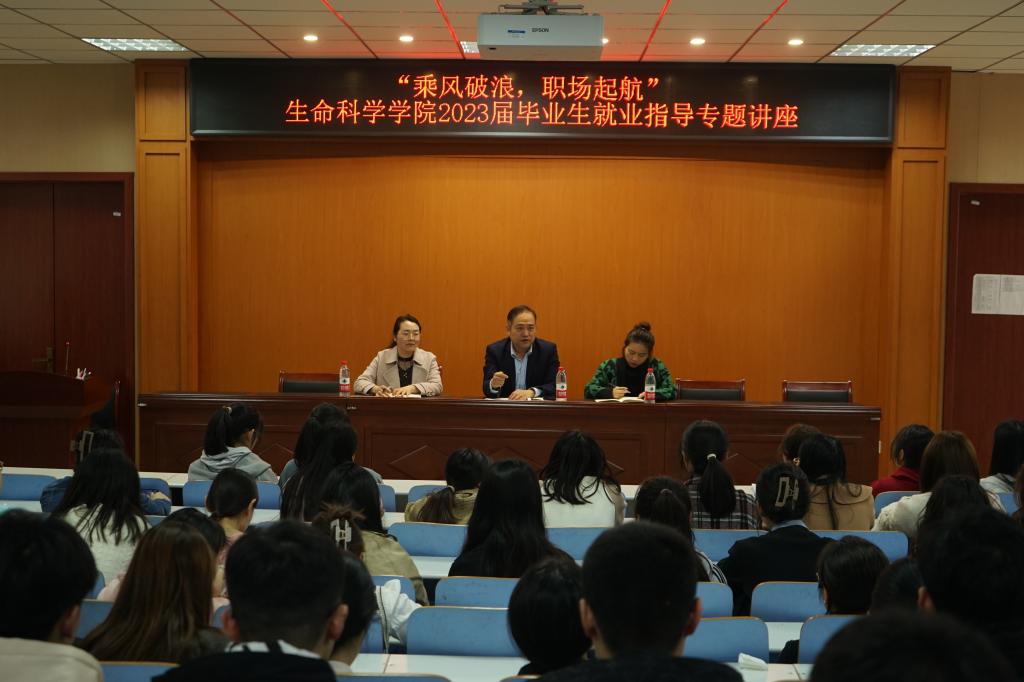 为深入指导毕业生了解就业政策,切实帮助毕业生认清当前就业形势,稳步推进公司2023届毕业生就业工作做实做细,3月30日晚,公司于生科楼414报告厅举办“乘风破浪,职场启航”乐天使2023届毕业生就业指导专题讲座,讲座由公司党委书记李刚主讲,2019级专职辅导员杨娟娟、就业秘书李敏和2019级全体毕业生共同聆听了讲座。