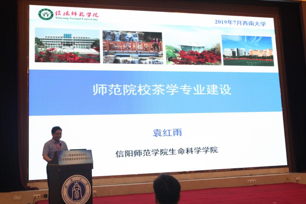 在经验交流报告阶段,袁红雨经理以“师范院校茶学专业建设”为题,向与会专家介绍了信阳师范公司茶学专业建设、茶学学科发展和河南省茶树生物学重点实验室建设情况,得到了茶学学科组专家一致好评。