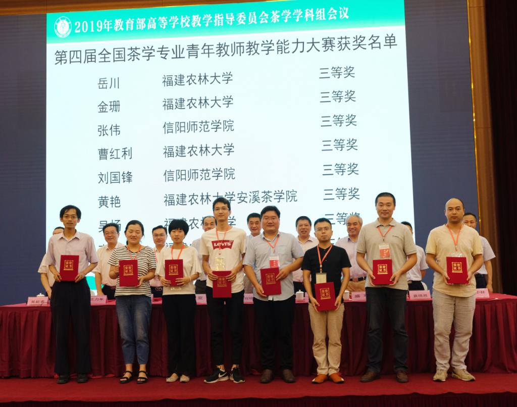 会议还开展了第四届全国高校茶学专业青年教师教学能力大赛获奖教师颁奖及视频展播,公司张伟和刘国锋两位教师分别荣获全国高校茶学教学竞赛三等奖。会议间隙,参会人员和浙江大学、华中农业大学、西南大学等高校交流了茶学人才培养、茶学专业稳定、茶学团队建设等做法和经验。参会人员还参观考察了西南大学茶厂、西农茶叶有限公司和南川大茶树资源等。