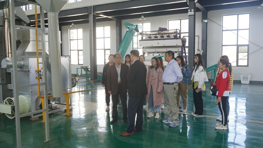 罗山县灵山镇河南亿峰生态林业开发有限责任公司,系现代化大型茶叶企业,总经理王洪运陪同考察了逾千平米的从日本原装进口的抹茶生产线,详细说明了公司对未来茶产品转型升级的研判以及逐步建设万亩抹茶原料基地的规划,预测传统茶叶生产模式将随着消费习惯的改变而升级换代,公司愿意为茶学专业老员工、研究生提供用武之地,江昌俊教授从抹茶原料要求和初选,结合设备与工艺,介绍了科技含量在今后茶叶品种改良、产品换代中的贡献。