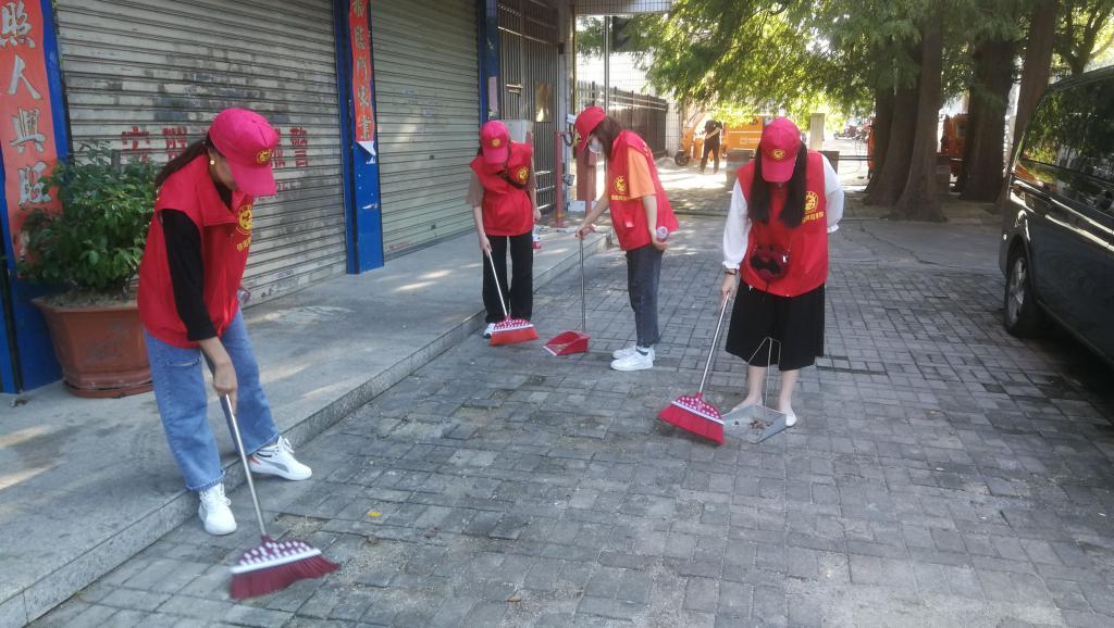 (志愿者在清扫公司街道)