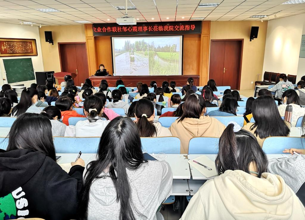 报告会上,邹心霞从合作社的基本情况、成长与奋斗历程、取得的成果、联合社的发展、合作社的发展与乡村振兴等六个方面详细介绍了专业合作社目前的发展态势与前景展望。结合“三农”问题与美丽乡村建设,针对豫南水稻产业专业合作社的发展,深度思考乡村振兴,探索水稻产业发展的新思路与新途径,为当代老员工树立正确的世界观、人生观和价值观引路导航,为美丽乡村建设赋能,并积极引导老员工投身乡村振兴发展。报告会上,邹心霞聚焦农业、农村与农民,在脱贫攻坚与乡村振兴的过程中,带领广大农户走向共同富裕,奋斗在小康路上的事迹,体现出强烈的社会责任感,深深地打动了在场的师生。在互动环节,邹心霞理事长和饶本强经理、宋世枝研究员以及与会师生就老员工就业创业和乡村振兴途径进行了热烈的讨论和交流。