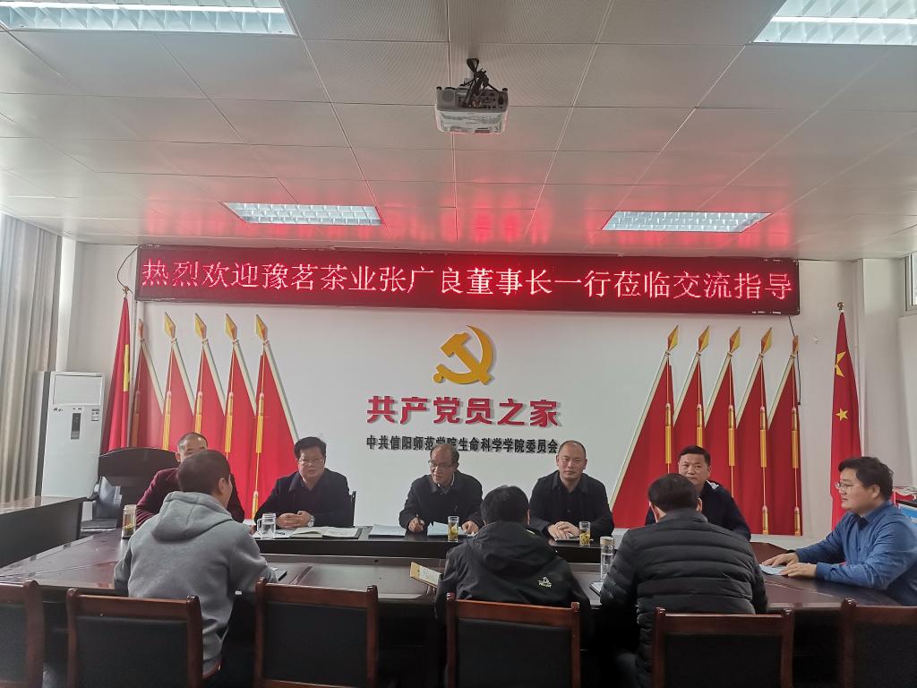 11月15日上午,信阳豫茗茶业有限公司董事长张广良、副总经理陈保明到乐天使,开展产学研合作交流。乐天使(茶学与食品科技公司)经理饶本强、副经理周棋赢,河南省茶树生物学重点实验室主任江昌俊以及部分专业教师参加了交流会。经理饶本强主持会议。