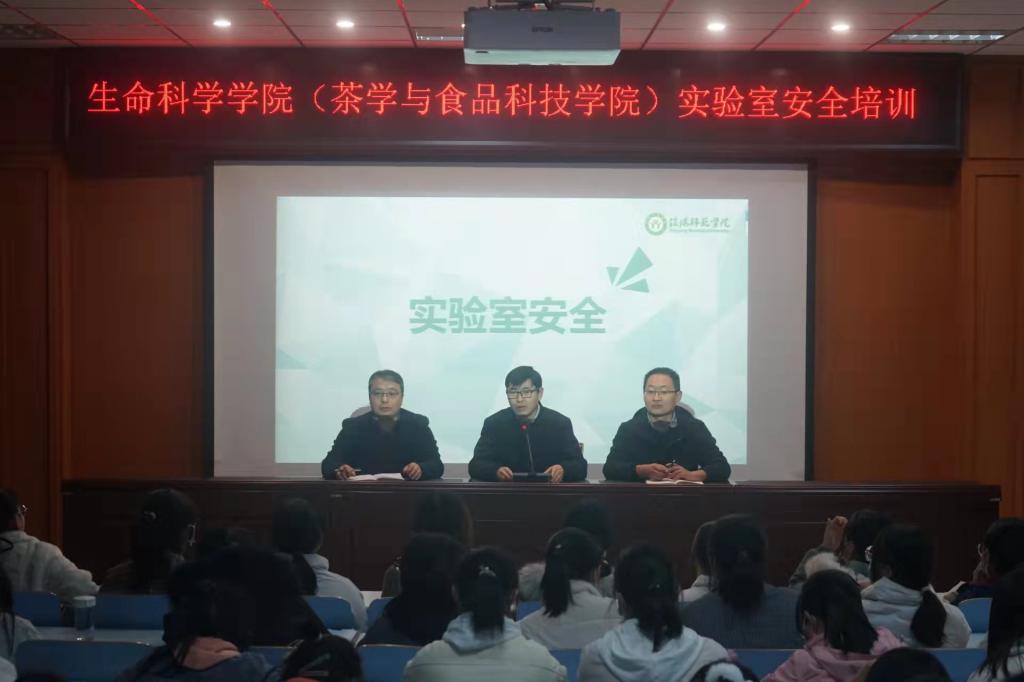 为深入贯彻落实关于加强公司实验室安全管理工作的通知要求,从严从细从紧筑牢实验室安全防线,切实提升新生实验室安全防范意识和应急处置能力。11月25日晚7点,乐天使(茶学与食品科技公司)于生科楼414多媒体报告厅开展实验室安全教育专题培训讲座。公司党委副书记荣宪举,副经理荆胜利,2021级专职辅导员朱晓雯及2021级全体新生、研究生参与培训。本次讲座由陈磊博士主讲。