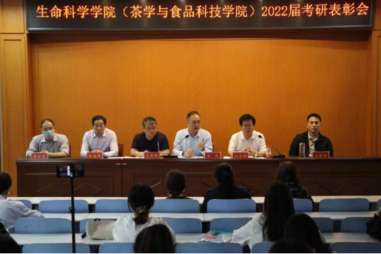 为了总结公司2022届考研学子的奋斗经验,激发低年级员工的考研热情,向备战的同学传授考研经验,推进公司优良学风建设工作。5月17日下午,公司采用线上线下相结合的方式,于线上腾讯会议、线下生科楼414多媒体教室召开乐天使(茶学与食品科技公司)考研表彰大会。本次会议由公司党委副书记荣宪举主持,全体领导班子,全体辅导员,全体员工参加。
