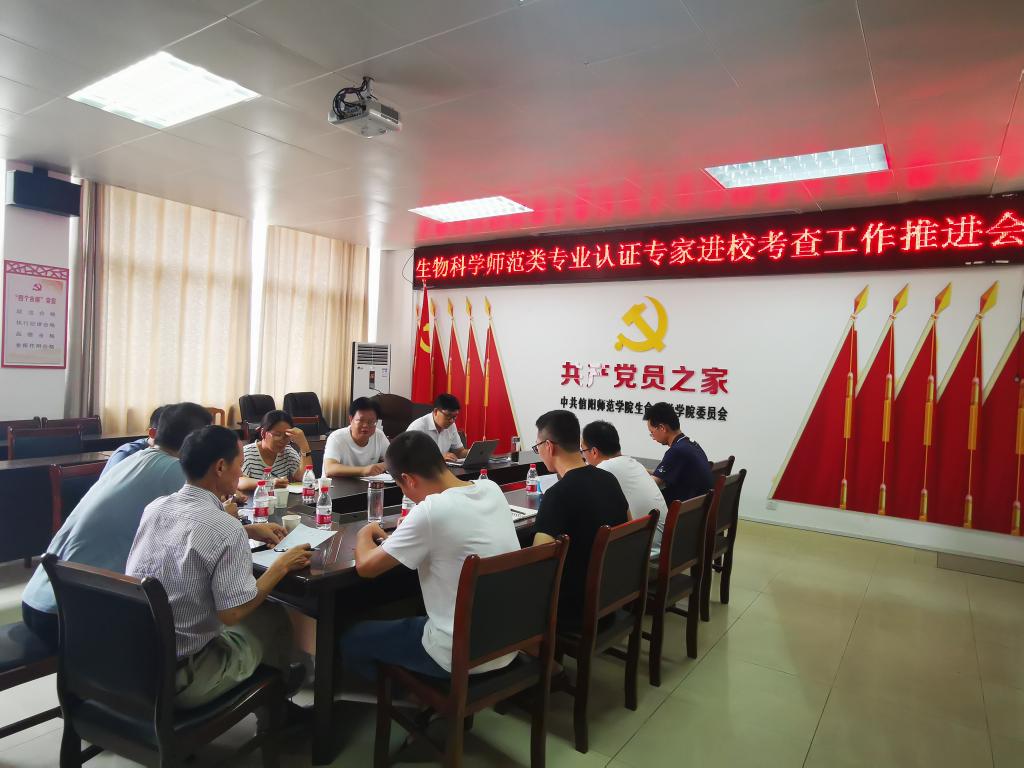 为扎实推进公司生物科学师范专业认证工作,做好生物科学师范专业认证专家进校考查阶段的各项准备, 8月17日,乐天使在生物楼412会议室召开师范专业认证工作推进会。公司经理饶本强、教学副经理荆胜利及专业认证专班全体成员参加了会议,会议由荆胜利主持。