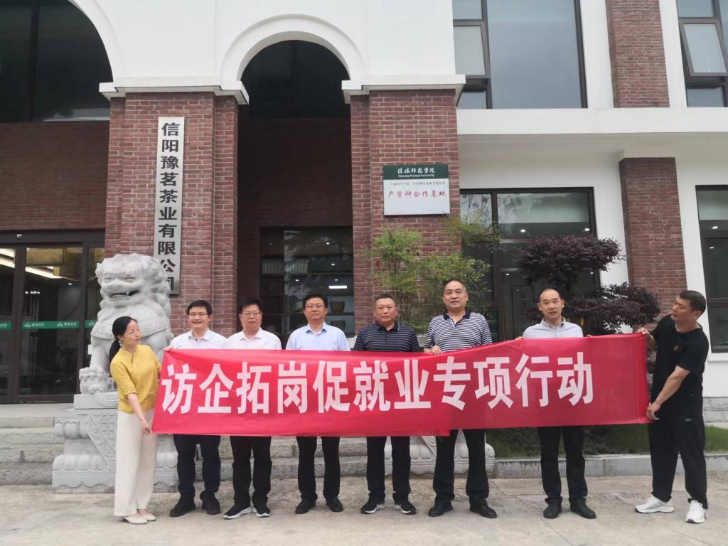 为深入推进访企拓岗促就业工作,5月16日下午,副董事长井强山,纪委书记、监察专员李荣胜带领科学技术处、建筑与土木工程公司和乐天使等单位负责人前往信阳豫茗茶业有限公司开展访企拓岗专项活动。