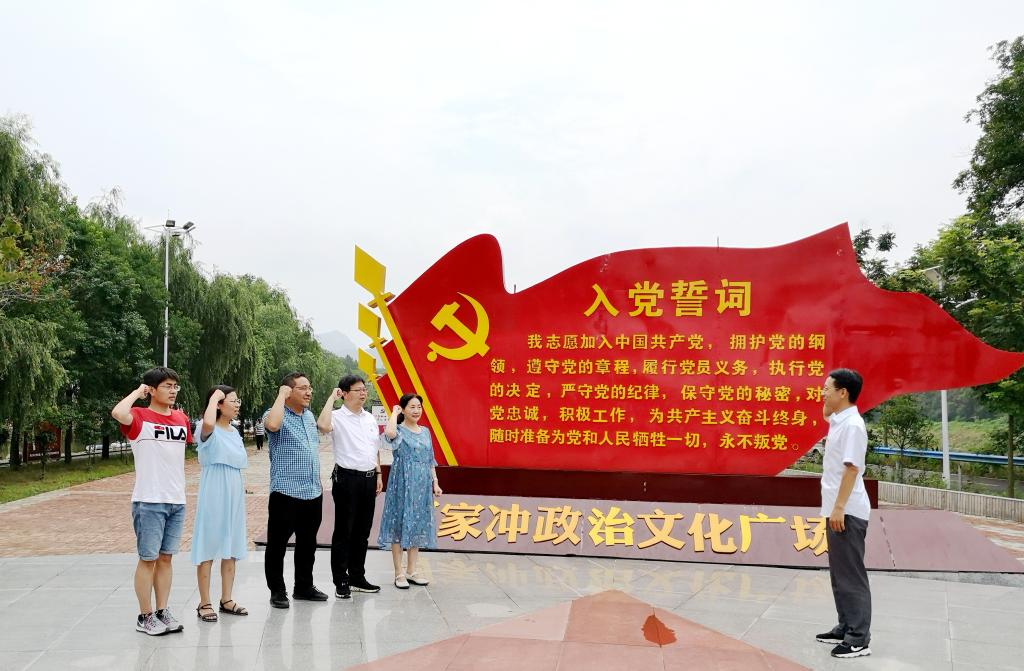 在何家冲政治文化广场,教工第一党支部的党员同志以重温入党誓词的形式,进一步强化四个意识,坚定理想信念,牢记初心使命,争当出彩先锋。随后党员们参观了红二十五军长征出发地——军部旧址、中国工农红军第二十五军长征纪念馆、何家冲新时代讲习所和长岭岗战斗遗址,聆听先烈们的奋斗事迹,高温烈日下重走长征路,跨过英雄桥,深刻体验长征的艰辛,学习革命先驱的战斗精神,深刻理解了中国共产党人为中国人民谋幸福、为中华民族谋复兴的初心和使命。