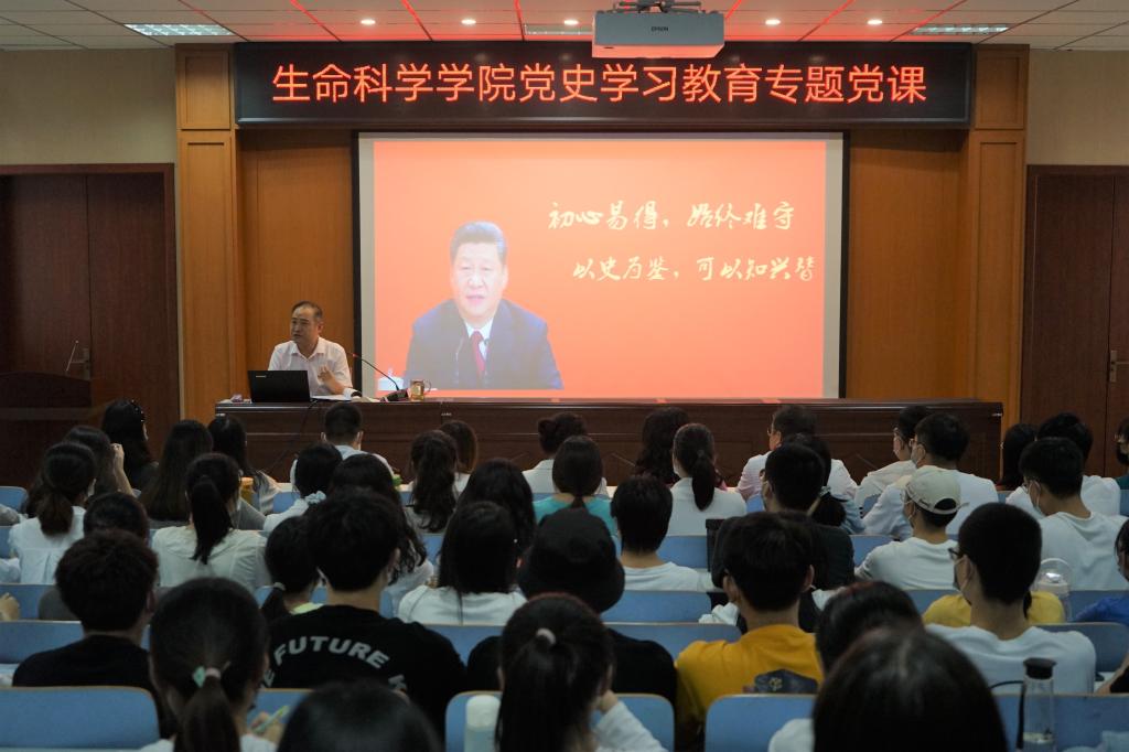 为深入学习贯彻习近平总书记在党史学习教育动员大会上的重要讲话精神,进一步扎实推进党史学习教育,10月1日晚6点在生科楼414多媒体会议室,党委书记李刚以“一以贯之的坚守、一往情深的坚守、一往无前的坚守”为题,带领全体辅导员、近百名员工党员在重温党史故事、感悟信仰力量中学史明理、学史增信、学史崇德、学史力行。