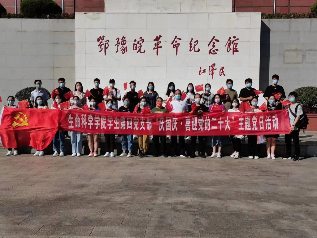 为庆祝中华人民共和国成立73周年,喜迎党的二十大胜利召开,进一步增强全体党员的凝聚力和战斗力,充分发挥党员的先锋模范作用。10月3日,乐天使员工第四党支部前往信阳鄂豫皖革命纪念馆开展“庆国庆.喜迎党的二十大”主题党日活动。公司党委书记李刚、副书记荣宪举、 副经理周棋赢,专职组织员杨娟娟,教工党支部书记彭波、杨光,员工党支部书记熊蕾,以及员工第四党支部20名党员共同参加了主题党日活动。